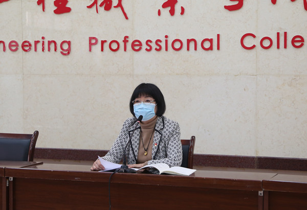 宣传部李任飞副科长就学院防控新冠肺炎疫情舆情应对对各位参会人员进行了培训。她就如何做好疫情防控宣传教育和舆论引导进行了详尽的说明。