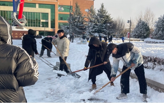 风雪中,我们看到了校园里的不同身影,有领导、有教师、有学生,有保卫、有物业……他们顶风冒雪,用自己的辛勤付出清除了道路积雪,保障了师生出行,保障了师生的正常学习生活,在2021年岁末,为校园增添了一道亮丽风景线。