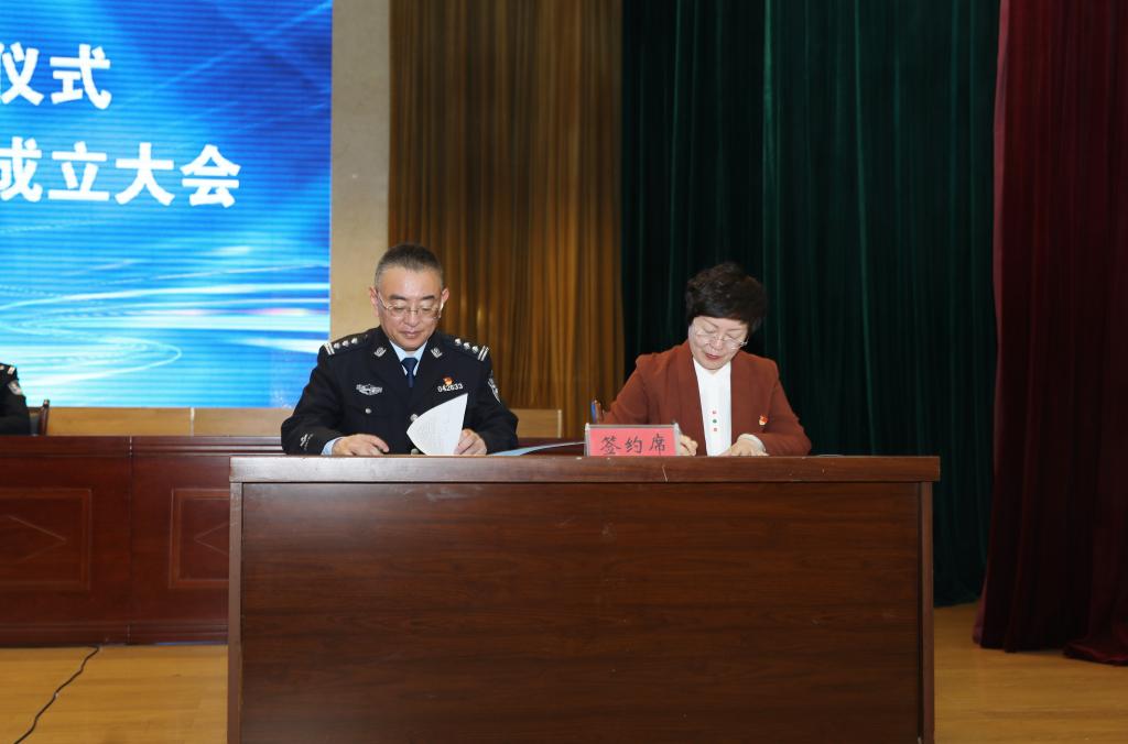 会上,曲耀春与马红军共同签订了警校共建意向书。随后,曲耀春为马红军颁发了“法制副校长”聘书,为市公安局张洁同志和市公安局福山分局周鹏、赵军、王国宏、崔子明、孙明刚、王忠国、赵鸿强、张伟、衣伟伟等同志颁发了“法制辅导员”聘书,并为“义警”志愿服务队授旗。
