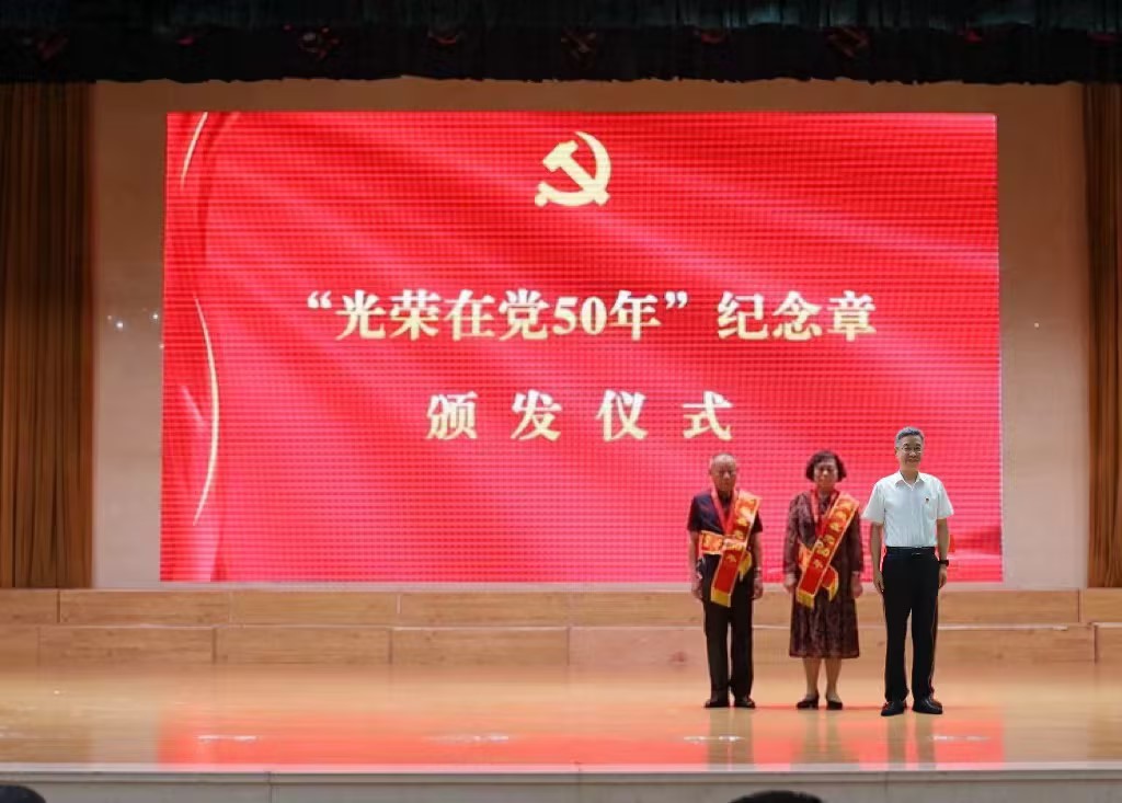 为表彰先进、激励斗志,学院党委决定授予孙圣雅等71名共产党员“优秀共产党员”称号,授予郭伟红等13名党务工作者“优秀党务工作者”称号,授予第一党总支等13个党组织“先进基层党组织”称号。会上,秦桂建为学院退休老党员颁发“光荣在党50年”纪念章,观看了“两优一先”典型事迹专题片《凝聚奋进力量 榜样引领前行》,领导班子成员为受表彰代表颁奖。