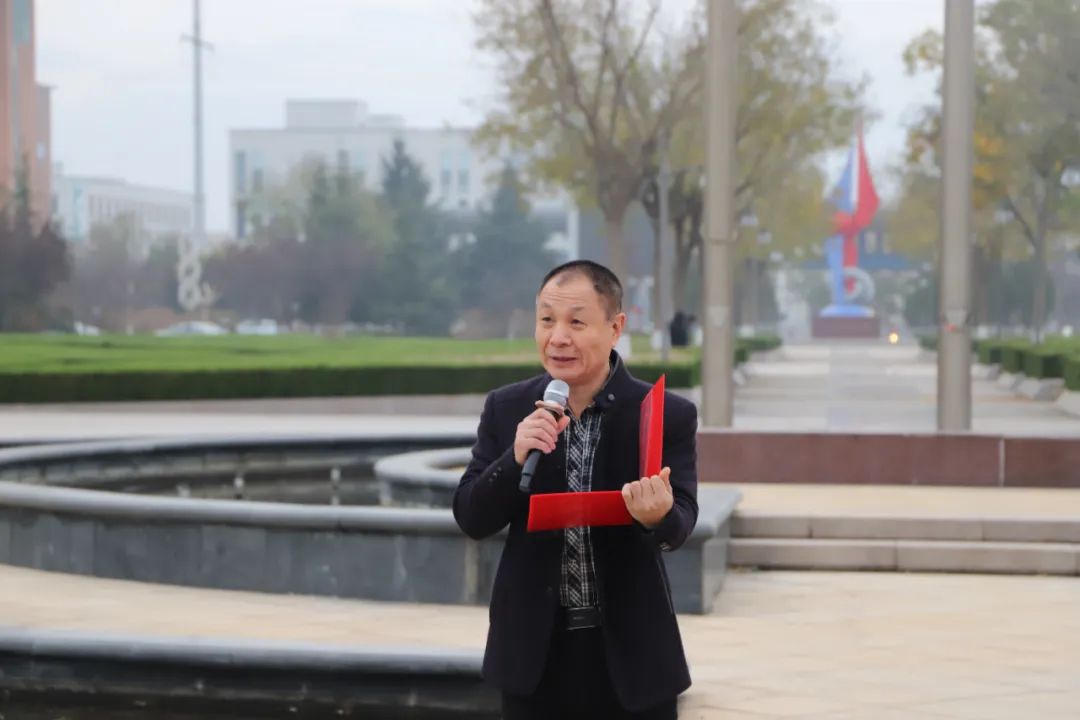 学生代表胡明霞做“奋进正当时,青年展风采”为主题的演讲,倡导青年学生应以奋进为姿态追求梦想,在奋进中绽放出最绚烂的光彩,怀揣着奋进的精神,传递正能量,无愧伟大时代无愧于肩负使命。