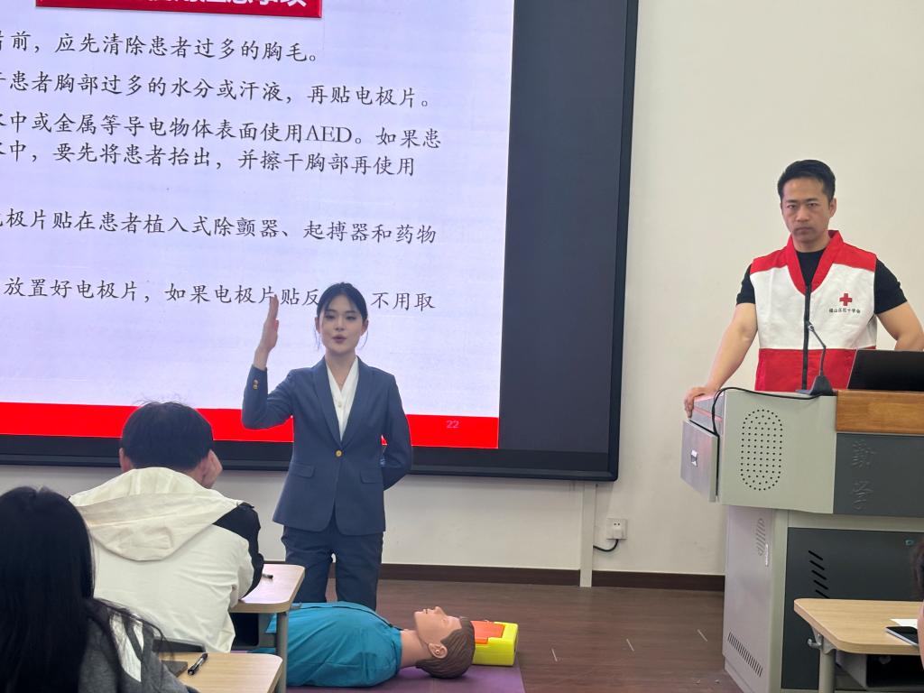 作为航空服务专业群的重要培养方向,急救技能是该专业群的核心能力之一。交通工程系教学管理党支部立足专业特色,积极组织红十字会师资团队,将航空应急救护标准与校园急救培训相结合,系统讲授了心肺复苏(CPR)、自动体外除颤器(AED)使用、创伤包扎及常见急症处理等实用技能。培训采用“理论+实操”模式,通过情景模拟、互动演练等方式,确保参训学员学以致用。