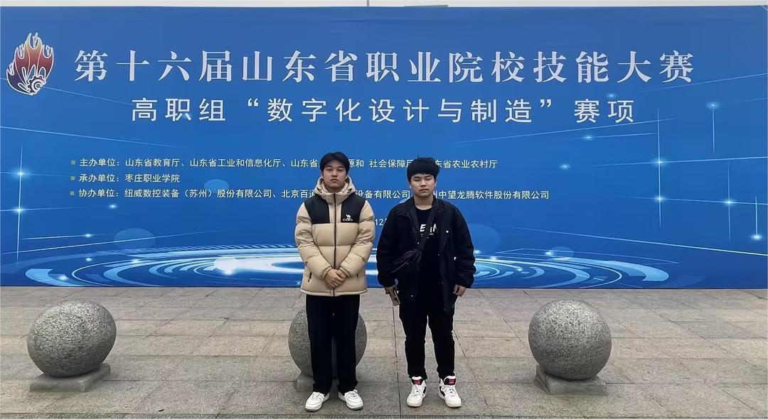 12月11日-12月12日,第十六届山东省职业院校技能大赛高职组“数字化设计与制造”赛项在枣庄职业学院举行,机电工程系刘玉麟、苏鑫乐两位同学组队代表我院参赛,经过两天的激烈角逐,最终荣获三等奖。
