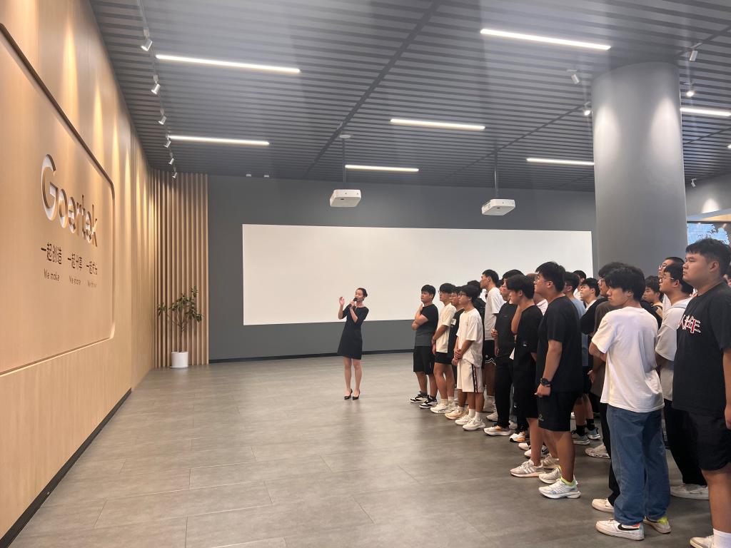 随后,在歌尔集团的精心安排下,师生们驱车前往歌尔工学院对其展厅、教室和宿舍进行了全方位的参观。